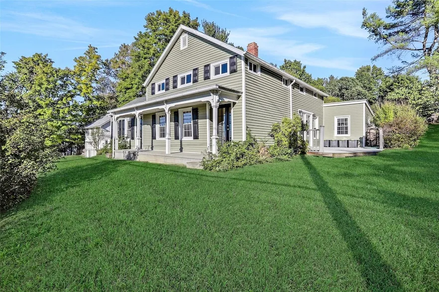 Historic Farmhouse with Mountain Views, Guest Apartment & Modern UpgradesOwn a piece of history with this beautiful and classic 1780s farmhouse, perfectly situated with panoramic views of the Catskill Mountains. Whether you're looking for a peaceful full-time residence or an income-producing property, this home offers the best of both worlds. Inside, you'll find 3 bedrooms and 2 full baths, including a flexible layout with multiple living areas and a bonus room that easily serves as a guest space or third bedroom. The large kitchen features ample counter space and cabinetry, with a commercial sized stove ideal for home chefs. Enjoy cozy evenings by the wood stove or decorate the original fireplace to add seasonal charm. A separate laundry room adds everyday convenience. Step outside to three distinct outdoor areas: a balcony off the primary suite, a side patio for entertaining, and a co...
