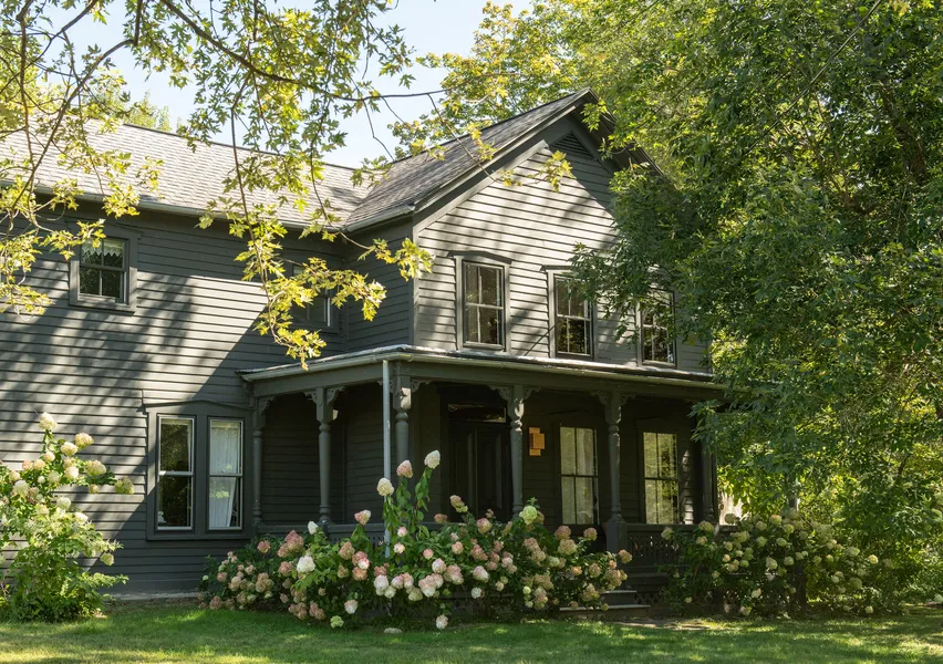 On a beautiful drive along the Hudson River you’ll find 131 Northern Boulevard, an incredibly charming c1880 farmhouse on one of the best roads in the Valley just minutes to Germantown. Classic proportions are accented by fun finishes chosen by Tandem Design. The house was recently featured in Architectural Digest. You’ll find the original wide board pine floors and exposed beams and columns in the mostly open space, nods to the home’s historic past. And the bespoke kitchen is all new with maple front cabinets, wave quartzite countertops in a rust-colored hue and vintage metal pulls. The home’s original woodstove is still in place and cranks. On the first floor there is a full bath and a lovely office/media room tucked off to the side. Upstairs you’ll find three bedrooms, all with their own personalities and all nicely sized with vintage art deco lighting and hand forged iron curtain rods. A full bath on the second floor has two antique pedestal sinks, a soaking tub, and a wonderfully large shower. The attention to detail is outstanding but the home is lighthearted and designed to be enjoyed. The backyard gets excellent sun exposure and abuts open field. 131 Northern Boulevard is your quintessential Hudson Valley farmhouse with spunk, just 10m to Amtrak and 2h to NYC.