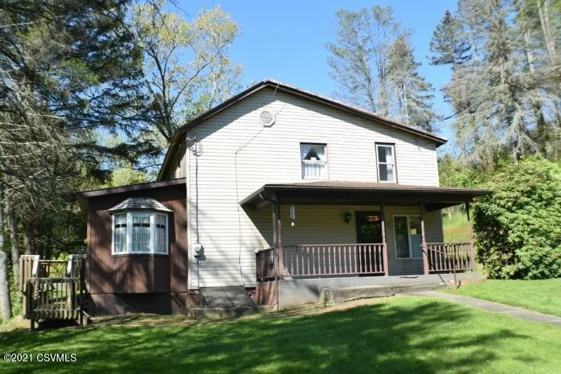Three miles to Knoebels means a summer full of fun. This four-bedroom two-story home is situated on 3.1 wooded acres, side deck, first floor bath, new kitchen flooring, spacious dining area, oil hot air heat, two car detached block garage.
