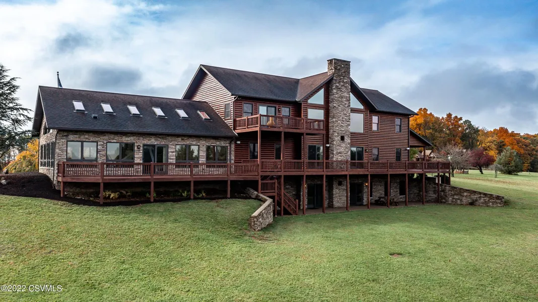 Lodge meets chic in this custom built log home nestled on 48 acres of natural serenity with picturesque sunset views and only 5 minutes from town! Warm honey-hued logs and spectacular views from every room with six bedrooms, six bathrooms and over 5000 square feet of finished above grade living space. The walk-out lower level offers an additional 2200 square feet of living space. This interior exudes inviting charm throughout complete with a home office, two stacked stone propane fireplaces, an indoor pool house with hot tub and 3/4 bath. Beautiful kitchen with gorgeous stacked stone center island and fully applianced. The open great room offers massive floor to ceiling windows with those amazing views! Home gym. Billiards/game room. Rec Room with wet bar and SO. MUCH. MORE!