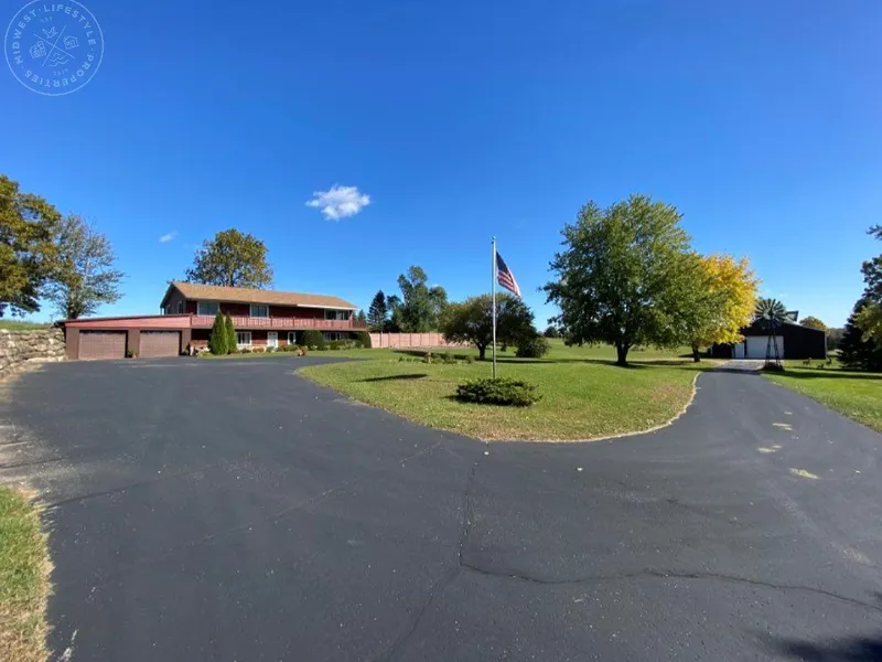 Unique property just inside city limits resting on 18+ acres of land. This 2600+ sq ft raised ranch has many features that awaits you. 20x40 in ground pool with brand new liner, 42x54 Pole building with concrete floor and electricity, black top driveway, wrap around composite deck replaced in 2014, new vinyl siding 2018, newer roof, water heater 2018 and many more updates. Within 1 mile of I39 and Hwy 16. The land is mostly a gentle sloping 18 acres with a small pond. There are fruit trees and rows of spruce trees to help with privacy. The Property is Zoned M3 Interstate Exchange Industrial. Additional rooms in the basement that could be used for future bedrooms. Great property for a business also. Measurements are approx. Contact Travis Hamele for more info 608-697-3349