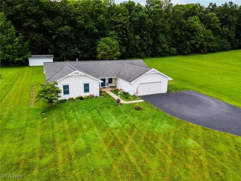 Welcome to Your Dream Ranch in Crestview Schools! Step into bright charm and everyday comfort with this lovingly maintained one-owner ranch, nestled on a beautifully flat 1-acre lot in the highly sought-after Crestview School District. Built in 1995, this sprawling 3-bedroom, 2.5-bath home offers a harmonious blend of space, light, and livability-perfect for growing families or those craving peaceful, open living. The heart of the home is the primary living room, where soaring cathedral ceilings, a cozy fireplace, and elegant French doors invite you to step out onto the backyard patio-creating a seamless indoor-outdoor connection for relaxing or entertaining. The generously sized primary suite is a true retreat with its own private full bath and a spacious walk-in closet. Two additional bedrooms are tucked away for privacy, while the conveniently located half bath is ideal for guests near the welcoming secondary living room, first-floor laundry, and attached 2-car garage entrance. Gleaming solid hardwood floors flow throughout the main living areas and primary bedroom, adding warmth and elegance. The eat-in kitchen is designed for everyday functionality and casual meals. Step outside to your very own backyard oasis-a lush, landscaped haven with a concrete patio perfect for sunny afternoons, outdoor dining, or quiet morning coffee. A massive shed with a concrete floor provides ample space for hobbies, tools, or seasonal storage. With well-maintained mechanical systems and thoughtful care from its original owners, this home is not just a house-it's a lifestyle waiting to be embraced. Don't miss your chance to own this beautiful ranch in a location that truly has it all. Schedule your private tour today and experience the magic for yourself!