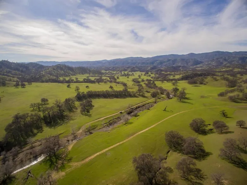 The eastern portion of Cortina Ridge Ranch. A beautiful, accessible yet private holding of 8,446 +/- acres, well set up for a cattle operation but also loaded with wild game. Plenty of great spots to situate a ranch home, with views out to the Sutter Buttes. Year-round Cortina Creek runs through the center of the ranch, creating a wide valley.