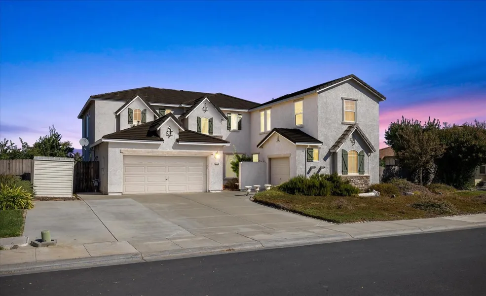 Price Reduction! This magnificent executive home boasts SIX bedrooms and 4 bathrooms. Enter into a grand foyer with a view of the upstairs balcony and an abundance of natural light. The heart of the home is the open kitchen/family room great room. The kitchen boasts granite counters, center island, gas range and large pantry. A family room fireplace is ideal for the upcoming cool weather. Additional living and dining rooms make this a home well suited for entertaining. Upstairs is a conveniently located laundry room. The master suite is a wing of its own. Enjoy an adjoining room for reading, relaxing or perhaps a nursery. The ensuite features a soaking tub, shower and separate vanities. Outside is a gardener's oasis. Mature, producing trees include mandarin, lime, Fuyu persimmon, peach, pomegranate, quince and fig. With three storage sheds you could create your own potting shed. Enjoy the ultimate in privacy with no rear neighbors. Two separate garages, a 2 car and 1 one car which could serve as a home gym. This would make a perfect multi-generational home. Super easy commute on I-5.