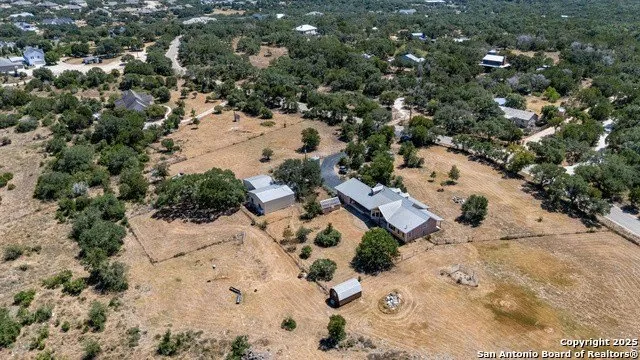 Discover a rare opportunity to own 10.74 unrestricted acres for commercial, residential, or mixed-use development. Situated in both the Edwards and Trinity Aquifer recharge zones and located near a new commercial business park, this property offers exceptional potential for an owner/operator, live/work setup, or investment property. The land is development-ready with no zoning restrictions and boasts excellent visibility and access due to its strategic location. Improvements include multiple outbuildings: a 20x30 metal shop and a 24 x 30 metal building with a 10,000 lb. rotary 2-post lift-ideal for automotive or mechanical use-along with a 12x16 cedar storage shed, a 10x20 greenhouse with a vent fan, and a double-fenced chicken coop with a solar/electric automatic door. The oversized two-car garage/workshop features a 50-amp welder hookup, high ceilings suitable for a car lift, insulated walls, loft storage, and programmable keypad access. Utility infrastructure includes three 200-amp breaker panels, a 525 ft. well with a Franklin booster pump, a 3,200-gallon cistern with fire hose attachment, a Hoot aerobic septic system with three spray heads, two large propane tanks,RV and generator hookups, and an Apollo solar-powered automatic gate with battery backup and secure mailbox. This 2002 custom-built 3-bedroom, 2-bath home features energy-efficient 2x6 framing and offers exceptional amenities, including a theater room with equipment, a sunroom, a mudroom with shower, and a private mother-in-law suite. It's fully wired with Cat 5 Ethernet, Swan camera system, and TV mounts in every room and shop. Additional upgrades include fire-rated drywall, water softener system, insulated walls, stained concrete foundation, and some furnishings and a Browning Safe that convey. Outdoor features include an 8-person Bullfrog hot tub on a reinforced slab, fruit trees, wildlife troughs, and a bird habitat for purple martins and barn swallows. The entire property is fully fenced and cross-fenced with oil field pipe, barbed wire, and a breaking floodgate. With unrestricted land use, existing infrastructure, and close proximity to commercial growth, this property is ideal for a small business headquarters, contractor yard, auto or specialty shop, live/work development, or a future investment holding.