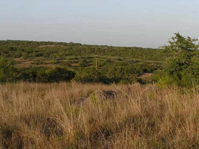 A hill county view of a private ranch to the south of custom build site. Central water(no well) and a septic are required.