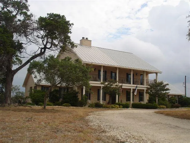 Breath taking hill country views from the great room and front and back balconies of this quality built traditional home sitting on 13 Acres. Great workshop area, crown moldings and much more. Two fireplaces, wonderful porch. 4 Bedrooms, 3.5 Bathrooms, 2 Living and 2 Dining Areas. Good horse country with sheep mesh type fencing. Quality, gourmet kitchen with butler's pantry. Breeze way connects oversided 3 car garage. Walk up stairs to large storage area. $598,000