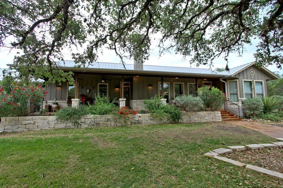 Setting pretty on 6.5 acres with rocking chair ready porches. Experience this two home, secluded, tree canopied retreat. The main house is around 3000 sq. ft. per builder, featuring 4 bedrooms and 3 bathroom, with two Texas sized living areas. Mother-in-law home is 1624 sq. ft. featuring 2 bedrooms and 2 bathrooms. Both homes are exquitely designed by an interior designer. Gleaming stained concrete flooring, massive stone fireplace, huge outdoor stone fireplace completes the country ambience. Metal building set away from house has ample space measuring 1800 sq. ft. and large office.