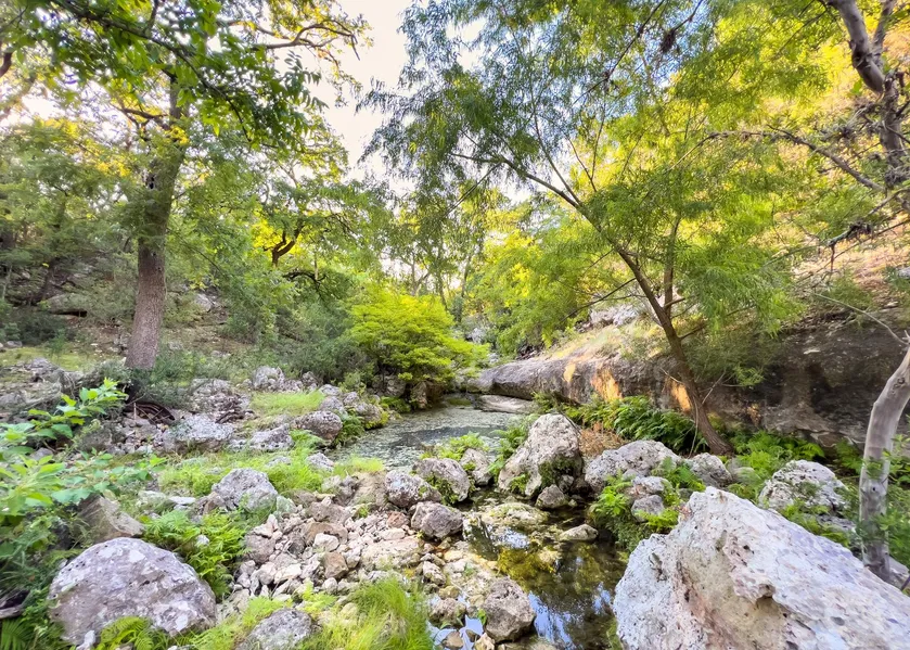 The ranch boasts absolutely perfect topography with gentle sloping shelves all the way down the springs pouring out of the large boulders below. With Spanish moss, ferns and other incredible native flora and fauna on the ranch, this live water feature is one of the finest examples of what a piece of untouched Texas looks like.