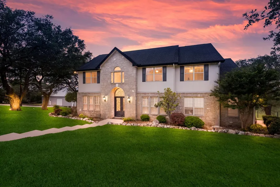 This beautiful Texas hill country home is a stunning four bed, four and half bath open floor plan that offers large living spaces perfect for enjoying the stunning hill country views and entertaining guests. The master suite is relaxing and enjoyable with the a jacuzzi tub and large walk in shower along with a spacious walk in closet that is trimmed with many built in shelves. The upstairs is perfect for your family or your guests with 3 full bedrooms, one bedroom with its own full bath and the other two bedrooms are connected by a bathroom. The loft is perfect for gaming, movies or studies. The kitchen has been fitted with granite counters, custom cabinetry, and beautiful fixtures throughout. The outdoor cabana and pool offer an oasis to kick back and enjoy life's moments in the privacy of the beautiful Texas hill country. The property's perimeter is game fenced as well as interior cros...
