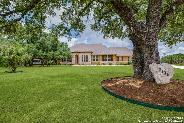 Fashioned perfectly to fit into the landscape of the Hill Country, traditionally styled home with ample space to build new memories! Escape through the home's charming ranch-style windowed front door and enjoy the openness of this floor plan. Designed with the intention of hosting, this property has room for loved ones and gatherings. The kitchen is pristine with whitewashed cabinetry and light granite counters. The peninsula with a centered sink overlooks the living room containing a stone fireplace to match the house's exterior. The perfectly placed windows allow natural light from all angles to fill both living spaces and eating areas. The owner's suite offers plenty of light as well through a gorgeous bay window. Enjoy a split vanity, gorgeous walk-in shower, and soaking bath in the en suite owner's retreat bathroom. On the second floor, you will find a Texas-sized media room, which can be used as a guest suite. The lengthy back porch is covered and is fit with sunshades, along with an outdoor fireplace. During the day bask in the beautiful views of a massive backyard, and the sprawling lush greenery of the Texas Hill Country. Great space to add in your own custom pool!
