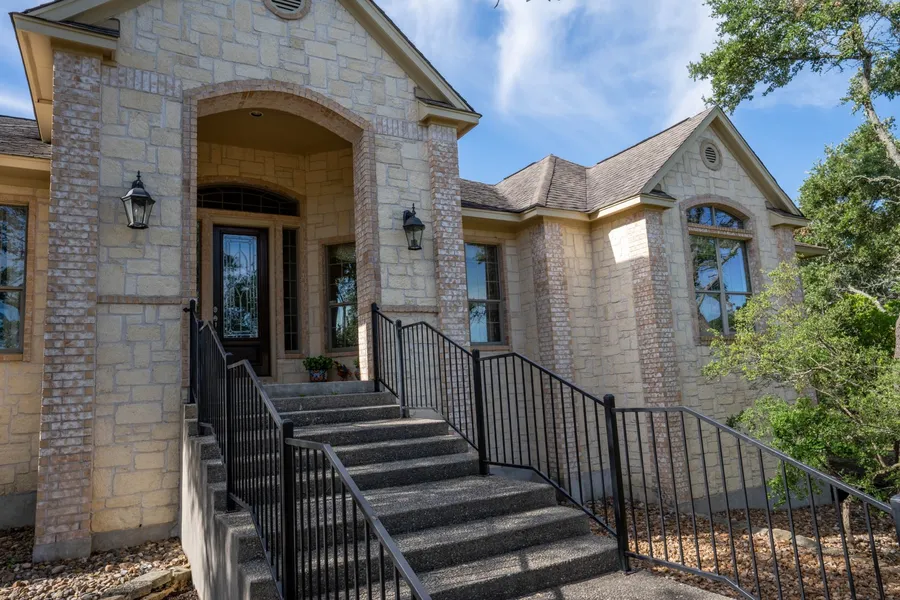 STUNNING SINGLE STORY ON 2 ACRES!!! Nestled on a quiet cul-de-sac lot with numerous oak trees this majestic stone and brick Sitterle built home delivers a luxurious hill country escape. The covered entry and elegant glass door usher you into high ceilings, neutral color palette and abundant natural light. Formal living for conversation and polished dining for those holiday parties. Home office with built-in wall unit for that work from home environment. Chef's delight granite island kitchen with gas cooktop, built-in oven, copious amounts of cabinet space and under cabinet lighting. Sun-kissed breakfast area overlooking the backyard. Open view to the family room boasting built-in cabinets/shelving adorned by a stone hearth fireplace. Texas sized master suite with wall of windows, his and hers closets, dual vanities, garden tub relaxation and shower stall to get you out the door. Jack-n-J...