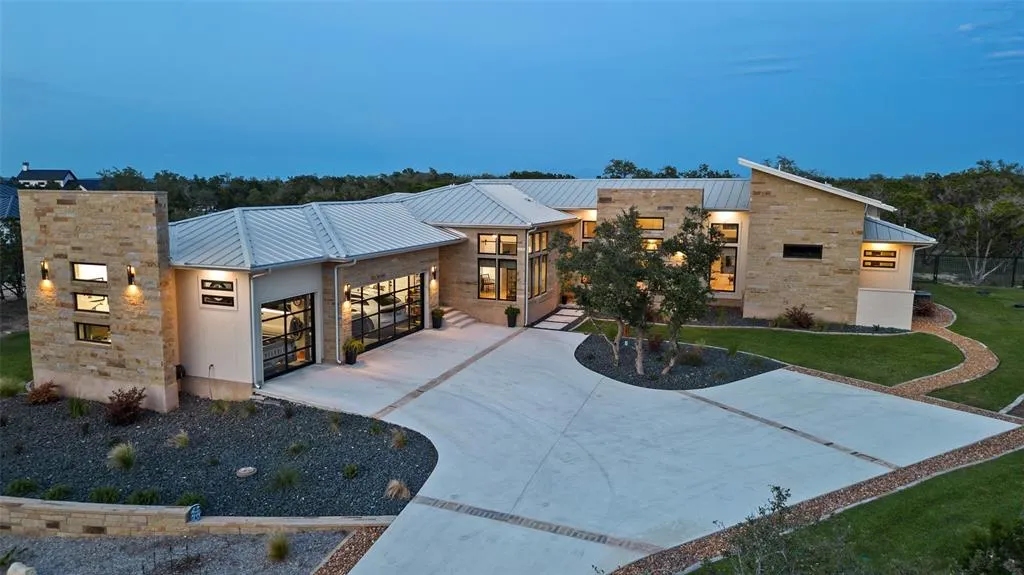 Making an immediate impression with its modern hill country design, fully fenced remote entry, and lush landscaping, this property is truly special. Welcome to custom luxury in the coveted Alto Lago private section of the Cordova community on Canyon Lake. Everything you could dream of exists on this modern oasis property featuring a 3684 sqft single story custom home situated on an exquisite 1.5 acre property. Elegant landscaping leads you towards the 4 bed 4.5 bath home with a car enthusiast's dream garage. Open-concept living, with stunning picture windows throughout provides amazing natural light highlighting high-end custom finishes. Designer tiles frame the electric LED fireplace centered in the great room opposite the gourmet kitchen with spacious waterfall island and stunning soft close cabinetry. Allow the entertainment space to expand from the living room onto the covered patio overlooking the stylish backyard of your dreams. Take a dip in the resort-styled pool and spa while you enjoy lunch prepared in your full outdoor kitchen. Experience the starry skies while warming up next to your custom-built fire pit surrounded by custom exterior party lighting. Enjoy heightened productivity in the natural light-filled office with designer backsplash and sophisticated built-ins. An immaculate layout allows for gentle flow and privacy for everyone. All bedrooms boast ensuite baths, spacious closets, and custom window shades. The stunning primary suite provides privacy and elegance with soaring ceilings, natural light, custom blackout shades and direct access to your outdoor living space. Step into your serene spa-inspired bathroom with marble tiled shower room with an enclosed soaking tub, gorgeous vanities and custom closet space. Fully approved plans by the HOA for a 1,000+ sqft casita for this home, just ready for the new owner. This property is truly one of a kind and designed to enhance the hill country surroundings while enclosing you in personal luxury.