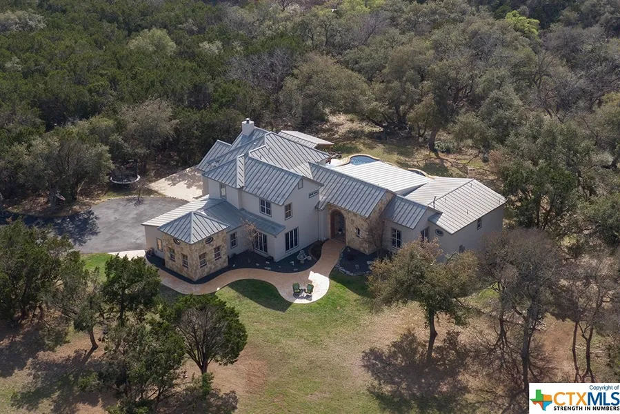 Welcome to your exquisite and rare 15-acre Texas estate conveniently positioned between our quaint German town of New Braunfels and the gateway to the Hill Country town of Spring Branch! Your luxury lifestyle includes a beautiful Tuscan-inspired farm house with a flexible floorplan and room for all. Superb Texas Sized living, land, storage and entertaining spaces. Your spectacular outdoor entertaining area is fun and stylish and is accentuated with three fire features and large covered kitchen area with all the essentials. Al fresco dining is enjoyable as your entire patio and pool area is surrounded by a flying insect repellant system with automatic timer. Your inviting, 35,000 gallon heated, lagoon-style pool features a beach entry, bubblers, submerged bar seating, eight-foot diving end, fitness swim jets, infinity edge and adjoining extra deep spa with cascading water. Your property i...