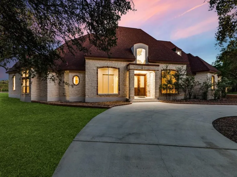 Come and experience the epitome of luxury and elegance found in this beautiful Spring Branch home. Spanning 6,355 sqft, this miraculous home boasts designer finishes, high ceilings, and ample space for entertaining or spending quality time with loved ones. Gather with friends and loved ones in the grand living room featuring a floor-to-ceiling stone fireplace and gorgeous curved ceiling accents, all overlooking the beautiful Texas Hill Country. The home backs up to a private ranch allowing for an extra touch of privacy and seclusion. Culinary enthusiasts will fall in love with the fabulous chef's kitchen offering a 6-burner gas stove top, an island with an additional sink and pot burner, and sprawling countertop prep space. The dining room is an ideal space for entertaining, with a full stone wall accent surrounding the area. Find ultimate tranquility within the primary bedroom with a fi...