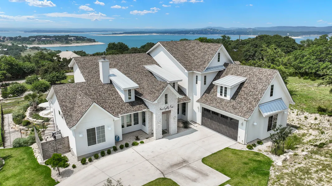 A truly unique getaway property, this home boasts stunning lake and sunset views of Canyon Lake within First Mountain. Nestled on a spacious 1.49-acre corner lot, it offers unmatched Canyon Lake living. Meticulously built by Casadomaine Custom Homes, the property combines unsurpassed craftsmanship and high-quality materials to create breathtaking living spaces. Inside this exceptional home, you'll find open areas with 17' vaulted ceilings in the great room with abundant upgrades, and chic accents found throughout. The chef's kitchen features a 48" Hallman Double Oven Range and custom Michael Edwards cabinets. Two guest bedrooms are on the main level, while the master retreat upstairs captures premium lake views and includes a spa-like bathroom with a claw foot tub. The home also boasts a gym and bonus room, a direct vent fireplace, decorative fir/cedar beams, white oak floors, and energy-efficient spray foam insulation. Prewired for 10 speakers and equipped with a smart security system, this home ensures both comfort and safety. The oversized 2-car garage includes a metallic epoxy floor, and a refrigerator hook-up. Outdoor features include a covered patio with a 15' ceiling, a Keith Zars Pool & Spa with built-in umbrella holders and slide, and an outdoor kitchen with a Coyote grill and Green Egg. Additional features include a composition roof with Galvalume dormers, a custom reclaimed mantle, prewired TV connections, a custom mudroom/drop zone, generator connection, water softener, two 50-gallon looped water heaters with a recirculating pump, a custom metal address, and a fenced doggy yard. This one-of-a-kind Casadomaine Custom Home offers unparalleled luxury and comfort, making it a true gem on Canyon Lake.