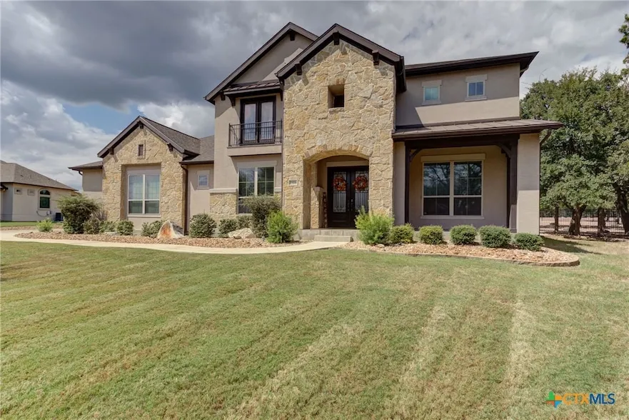 Nestled in the friendly gated community of Havenwood, this stunning 4,895 square foot home offers the perfect blend of luxury, comfort and fun! Featuring 5 bedrooms and 4.5 baths, this home is designed for both relaxation and entertainment. Step inside to discover a smartly laid out floor plan with a huge living room with vaulted ceilings that opens to the chef's kitchen and one dining area. The primary bedroom and one secondary bedroom with en suite are located on the main floor with 3 more bedrooms upstairs along with 2 full baths, a game room and a media/movie room! Just when you think you'll never leave the comforts of the interior, you'll step outside and see what your backyard has to offer! A heated pool, outdoor kitchen, covered patio, fire pit, extensive open space, and the piece de resistance... the 2 year old pickleball/basketball court! With a 4 car garage there will be room for your whole circle to take part in this incredible home! New Roof and pool heater in 2024, new downstairs HVAC & water heater 2022. Zoned to Comal ISD.