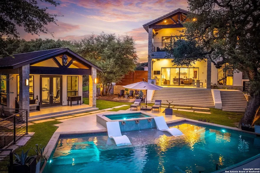 This exquisite and contemporary retreat is perfectly situated on 7.1 acres, offering privacy among mature oak trees in the serene River Chase community. This CKC custom home is bathed in natural light, creating a warm and inviting atmosphere throughout. The backyard features a resort-style Keith Zars pool & Spa, perfect for soaking up the sun and entertaining guests. With over 5100 square feet of living space, this home offers 3 bedrooms, 5.5 bathrooms, an office, game room, animal care room and separate gym/studio. Spacious primary suite with his and her closets and private courtyard. The other bedrooms are casitas, each having full bathrooms and share a kitchenette and laundry room. The gourmet kitchen includes Wolf and Sub-Zero appliances, a walk-in pantry and butler's area. Many other upgrades for lavish living. Experience the pinnacle of quality living with superb craftsmanship. Do...