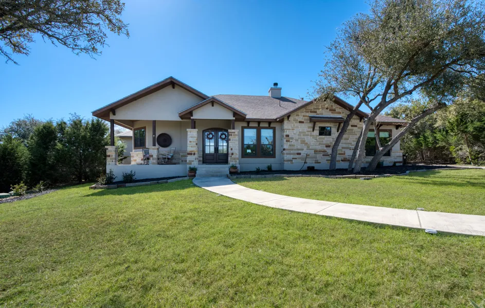 Discover a serene Hill Country retreat on 1.31 acres, just moments from the shores of Canyon Lake. Designed for both relaxation and entertaining, this home offers an elegant blend of natural beauty, thoughtful design, and modern comforts. The main part of the residence features four spacious bedrooms, including a private primary suite with direct outdoor access. The fourth room is the attached casita, a fully independent space under the same roof with its own bedroom, full bathroom, kitchenette, and living area—perfect for hosting guests, extended stays, or creating a private office or studio. The outdoor living spaces are equally impressive, centered around a resort-style pool and hot tub, complete with an outdoor shower. Enjoy the privacy and tranquility of your surroundings while taking in the scenic Hill Country views. From the front porch, you can savor peaceful Hill Country sunrises—a perfect way to begin the day in this tranquil setting. For those seeking even more breathtaking perspectives, you could add a rooftop deck that has been designed and HOA-approved, offering the potential for lake views and an unmatched setting for sunsets or stargazing. Inside, the heart of the home is a beautifully designed kitchen, featuring custom cabinetry with thoughtful storage solutions, including a pull spice rack. A large island, granite countertops, and premium lighting elevate both form and function. Adding to its seamless design, the pantry is cleverly camouflaged to appear as part of the cabinetry, enhancing the kitchen's sleek and sophisticated aesthetic. The open-concept living and dining areas are bathed in natural light from expansive windows, creating a warm and inviting atmosphere. A wrought iron fence encloses the backyard, adding both security and sophistication, while a circular driveway and controlled access to the neighborhood enhance privacy and convenience. With versatile living spaces, breathtaking views, and an unbeatable location, this home is a true sanctuary in the heart of the Texas Hill Country.