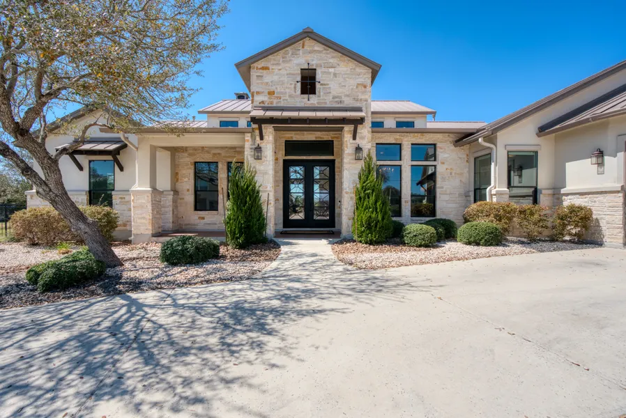 Extraordinary home, perfectly situated on over an acre in the sought after Vintage Oaks community in New Braunfels. Designed with both elegance and comfort in mind, this home features wood flooring and solid doors throughout, a dedicated office, and a formal dining area. At the heart of the home is the chef’s kitchen offering gas cooking, a built-in refrigerator, double ovens, and ample prep space. The spacious living area is enhanced by a gas fireplace, automatic shades, and a bar alcove, creating a warm yet sophisticated atmosphere. A media room with an additional bar area, wine fridge, and striking iron doors provides the ultimate space for entertaining. The primary suite features an electric fireplace, a spa-like ensuite with a jetted tub, separate shower, dual vanities, and oversized walk-in closet with attic access. Additional bedrooms are generously sized, with recently upgraded c...