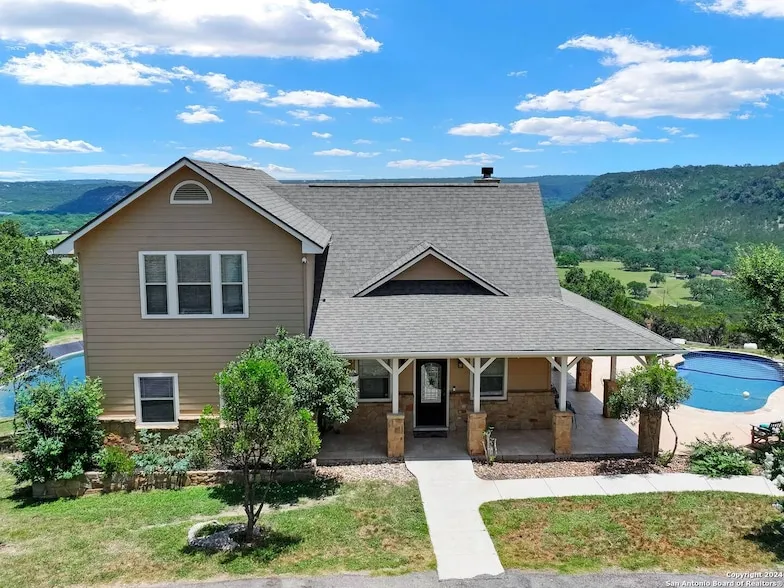 Nestled on over 7 acres of unrestricted luxury, accompanied with jaw dropping views and scenery, this Canyon Lake Estate is a sanctuary of peace and relaxation. Enjoy panoramic views of the expansive lakeside terrain from the tranquil setting of a private cul-de-sac. Conveniently located near Canyon Lake and the Guadalupe River, this residence provides unparalleled opportunities for water recreation, personal enjoyment or lucrative future developments/vacation rentals. This property offers two living quarters, the main dwelling consists of a two story home with 3 bedrooms, 2.5 baths, ample living and entertainment space. Directly adjacent to the main living quarters is a distinctive guest dwelling spanning a story and a half, complete with a fully equipped kitchen, luxurious bathroom, spacious living area, and a sizable loft-perfect for accommodating guests or creating an indulgent retreat for relaxation. This property is also host to the ultimate relaxation with an exquisite in-ground pool and expansive deck, with unparalleled views ideal for entertaining amidst natural wildlife. Enhancing the estate's allure, discover a charming pond for fishing and leisurely paddle boating-a serene oasis within your own backyard, reaching depths of over 15 feet. With endless investment opportunities such as both short/long term rental availability and the possibility of adding additional rental dwellings, this site is a must see. The property is currently being used as an AirBnB with bookings from now through December of this year. Further complementing this extraordinary site are additional amenities such as a sprawling greenhouse, a large workshop/storage shed, dog kennels, and a myriad of luxury enhancements throughout. Don't miss this rare opportunity to experience the epitome of refined living. Schedule your private tour today to immerse yourself in the unrivaled beauty and limitless potential of this exceptional property. No Restrictions, No City Taxes, No HOA.