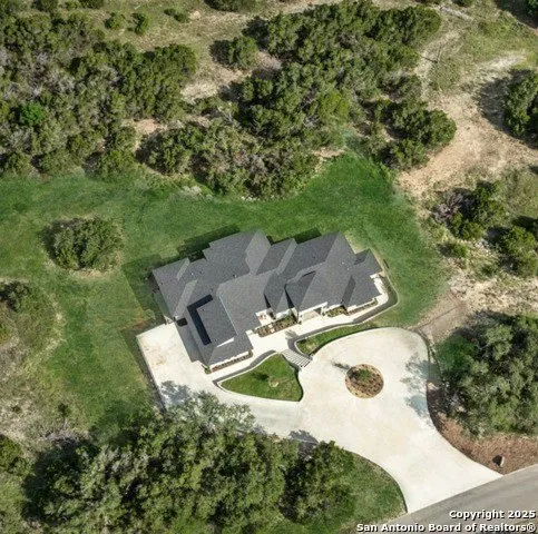 Hill Country Luxury | Custom Home with Sweeping Views in Ramble Ridge. Experience refined Hill Country living in this exceptional custom home, completed in January 2025, located in the prestigious gated community of Ramble Ridge. Set on a scenic acreage lot, this residence was thoughtfully designed for luxury, comfort, and seamless entertaining. Step inside through grand double iron doors into a soaring great room adorned with exposed wood beams, a dramatic wall of windows, and captivating panoramic views. The open-concept layout flows effortlessly into a designer chef's kitchen, complete with custom cabinetry, a statement marble island, and an inviting dining area. Just off the dining room, a private media room creates the perfect space for movie nights or game day gatherings. The elegant primary suite features a dedicated office space, a spa-like bath with an indulgent wet room (including soaking tub and rain shower), and a boutique-style walk-in closet crowned with a chandelier. A nearby secondary bedroom, ideal for a nursery or flex space, connects to the primary bath. On the opposite side of the home, two private en suite bedrooms offer comfort and seclusion for guests or family. Additional highlights include: * Expansive circle drive with estate-style curb appeal * Well-appointed laundry room with outdoor access and built-in storage * Oversized garage with 220V outlet for electric vehicles * Back patio and partially graded backyard ready for your custom outdoor vision. Ideally located just minutes from the natural beauty of Guadalupe River State Park, Canyon Lake, and local wineries, this home also offers convenient access to Randolph AFB, Joint Base San Antonio, and top-rated medical facilities including Methodist and Baptist hospitals. Residents enjoy a peaceful Hill Country setting with proximity to premier shopping, dining, and entertainment in New Braunfels, Garden Ridge, and North San Antonio. This is more than a home-it's a lifestyle of elevated serenity, scenic beauty, and timeless design. Welcome to life at Ramble Ridge.