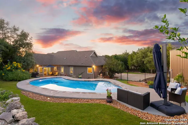 Welcome to 6193 FM 311 in the desirable Whispering Hills community of Spring Branch, TX. Situated on a spacious 1.67-acre lot with stunning Texas Hill Country views, this beautifully updated 3-bedroom, 3-bathroom home offers 2,017 square feet of comfortable living and thoughtful upgrades throughout. Inside, you'll find hardwood-look tile flooring throughout the entire home and plantation shutters that add a timeless touch to every room. The bright and inviting floor plan includes a versatile Florida room, now updated with all-new windows and a sliding glass door-perfect for enjoying the surrounding natural scenery year-round. Outdoors is where this property truly shines. A custom 16,000-gallon pool-professionally built by Texas Hill Country Pools-provides a private oasis for relaxation or entertaining. The property is fully fenced for added privacy and security and includes a 30x30 insul...