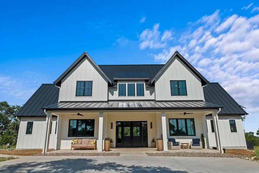 Masterful design and modern luxury are uniquely embodied in this Modern Farmhouse home located in High Ridge Ranch and nestled on an 8.51-acre lot where Hill Country sunsets span for miles. There are lush green panoramic views all around. Many trees offer shade during Texas summers. Minimal Cedar Trees can provide relief for your allergies. Wildflowers not only provide beauty but also help with the conservation of butterflies and bumblebees. Your living room is bright and airy, featuring a tray ceiling, Luxury Vinyl Plank floors, and many windows that allow natural light to flow throughout the house. Expansive glass doors provide an uninterrupted view of the landscape. You have built-in shelves to display your treasures surrounding your modern fireplace. Your kitchen is a showstopper! It features a large island with a farm sink basin. Rich-colored cabinets, butcher block countertops, quartz countertops, a gas cooktop stove, a butler pantry, a stunning backsplash, and a breakfast area. On the main floor, the primary bedroom is spacious and serene. Your ensuite features a double extended vanity with granite counters, a built-in Duravit bidet, a walk-in shower, and a WIC with custom-built-in storage. You have a second bedroom with an ensuite. You also have a dedicated office space. Head upstairs. You also have a loft area, a flex space, a media area, as well as two additional spacious bedrooms and a lovely secondary bathroom. One of your bedrooms upstairs can be used as a second office. When it's time to relax, venture to your covered patio. Enjoy your favorite tunes from the Sonos sound system located on the front and back porches. This space is ideal for entertaining and ready for your finishing touches. Your back patio has extra storage. A short drive to Wimberley offers access to boutique shopping, local restaurants, and Canyon Lake. Perfect for weekend fun and entertaining guests. It is an hour from ABIA and 15 minutes from the local grocery store.