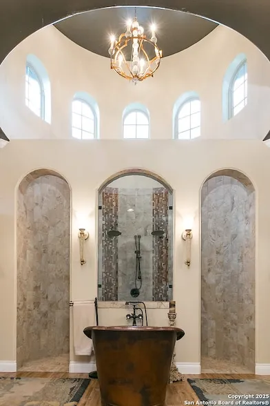Welcome to your dream retreat, a stunning 4,400 square foot TA French Custom home nestled in the exclusive gated Provence Section of Vintage Oaks. As you step through the elegant iron double doors, a grand foyer welcomes you into a world of luxury and comfort. The heart of this magnificent residence is the expansive Family/Living Room, featuring a cozy fireplace and direct access to a private patio. Here, you can unwind by a tranquil water fountain, sipping your morning coffee or enjoying an evening glass of wine. An entertainer's paradise awaits in the open Chef's Kitchen, equipped with top-of-the-line Thermador appliances, including a 6-burner gas stove, dual ovens, and a convenient pot filler. Two grand islands provide ample space for meal preparation and casual dining, while cornered lighted curio cabinets add a touch of elegance. The kitchen is complete with two charming copper sinks and a spacious walk-in pantry. The adjacent dining room is perfect for hosting gatherings, accommodating even the largest of tables and surrounded by windows that flood the space with natural light. For relaxation or entertainment, slide open the barn doors from the Family/Living Room to reveal a versatile Mancave or Game room. This additional living space boasts a full bar with a wine fridge and ice maker, plus another inviting fireplace. The Owner's Suite is a sanctuary of luxury, featuring French doors that lead to an opulent primary bath. Indulge in the copper tub beneath a walk-around domed ceiling shower, enjoy double vanities, and revel in the convenience of two primary closets. The three additional bedrooms at the front of the home are all en suite, with one adaptable as an office if desired. Outside, your backyard oasis awaits. Dive into the inviting pool with its breathtaking rock waterfall, gather around the cozy fire pit, or relax on the spacious covered patio with yet another fireplace. This home offers ample parking with an oversized 3-car garage and extended driveway space. It's also designed for energy efficiency with two tankless water heaters and foam insulation. As part of this vibrant community, residents enjoy resort-style amenities including a Tuscan-inspired clubhouse, sparkling pools, a lazy river, fitness center, sports courts, scenic trails, and an array of community events. Experience unparalleled luxury and elegance in this remarkable home that perfectly blends functionality with exquisite design.