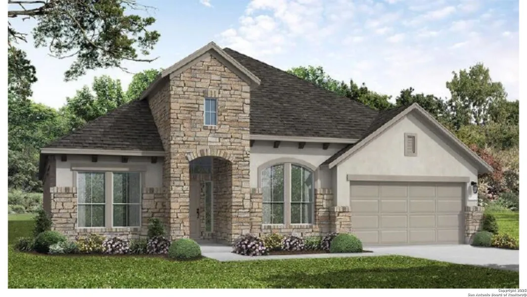 Introducing the Hideaway - a sophisticated and thoughtfully crafted one-story residence nestled in the beautiful Mayfair community of New Braunfels. Open-concept layout flows effortlessly from the gourmet kitchen into the dining and living areas, creating an inviting hub perfect for gatherings and everyday living. The oversized master suite offers a luxurious retreat, complete with a spa-inspired bathroom and generous walk-in closet.