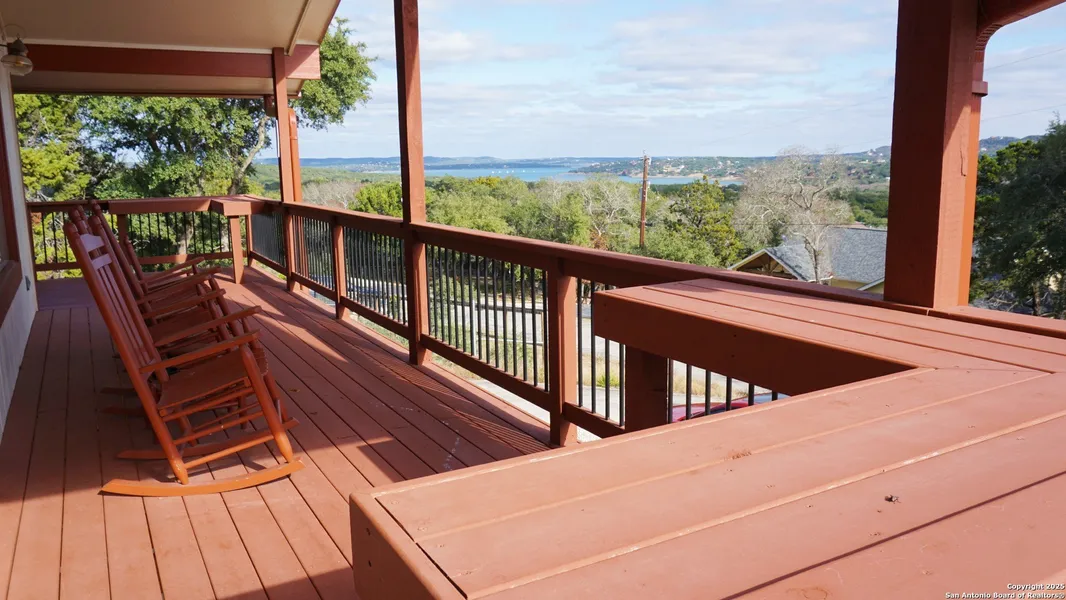 Discover a peaceful hill-country retreat with wraparound lake-view living. Perched above the trees, this updated 2-3 bedroom home offers a rare blend of privacy, flexibility, and character. Natural light fills the open living area, while the surrounding deck becomes an extension of your daily life-morning coffee, evening sunsets, and quiet work-from-home moments all feel elevated here. A versatile downstairs bonus space provides endless possibilities: studio, office, guest suite, or a private third-sleeping area. The additional lot conveys, expanding future potential for outdoor living, gardening, parking, or future improvements. Recent updates include refreshed fixtures, flooring, paint, mini-split, and lower level bathroom remodel-creating a move-in-ready feel that's hard to find at this price point. Already fully furnished, the home offers optional turnkey convenience if you ever want to host family, friends, or occasional short-term guests. This one is for the buyer craving treehouse vibes, views, and a quiet home base close to the lake. Community amenities include a club house and community pool. Property qualifies for Zero Down USDA financing-don't miss this opportunity to own a versatile Canyon Lake property.