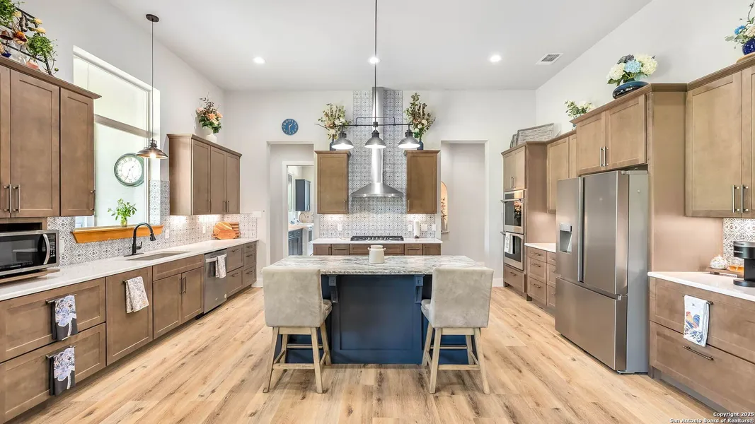 You'll love this beautiful one-story home with an oversized workshop in the desirable community of Belle Oaks Ranch in Bulverde, TX. This 3 bedroom, 2.5 bath homes sits on 1.39 acres. You walk into a spacious open floor plan that includes an island kitchen with quartz countertops, double ovens, and stainless steel appliances. You have a formal dining room and office. The primary suite is tucked away, adding a sense of privacy from the rest of the home. In the primary bath, you'll find a large walk-in closet, double vanities, a gorgeous tub, and a large walk-in shower! It is a dream! You won't want to leave your suite! The other two bedrooms are separated by a Jack and Jill bathroom with a shower/tub combo and double vanities. You'll want to spend your evenings out on the back porch enjoying the peace and quiet of the hill country! The home does have an attached 3-car garage plus a large ...