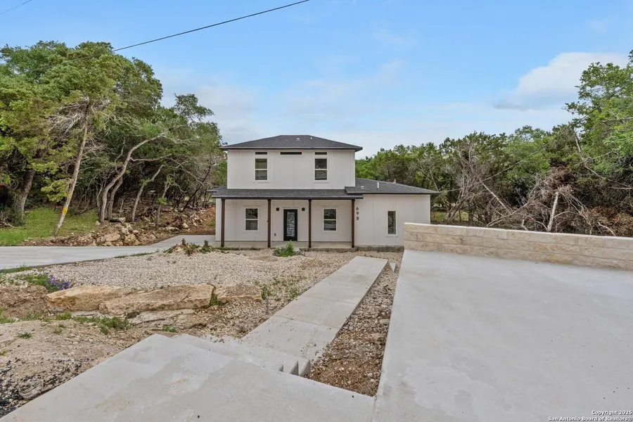 Welcome to your dream home in the Canyon Lake Forest! This premier new build boasts a modern charm with a gorgeous white exterior, black trim, and a sleek black iron door. The 3-bedroom, 2.5 bathroom layout features Oak wood ceramic tile throughout, complemented by natural and recessed lighting. The kitchen is a chef's delight with a plenty of cabinetry, Quartz Level 2 countertops, and a stunning waterfall island. Natural lighting floods the space, highlighting the contemporary design including the spiral s
