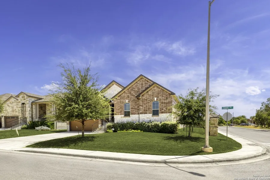 Welcome to this beautifully designed home in the sought-after community of The Villas at Manor Creek. Don't miss that Manor Creek has significantly lower property taxes than the nearby neighborhoods. Featuring the popular Roadrunner Plan, this residence blends comfort, functionality, and style. The gourmet kitchen opens to the family room and is highlighted by granite countertops, upgraded cabinetry, a gas cooktop, spacious island, walk-in pantry, and an oversized breakfast area - ideal for both everyday living and entertaining. Thoughtful upgrades include luxury vinyl plank flooring, a tankless water heater, water softener, built-in desk area, smart home technology, and full front-and-back irrigation. Situated on a corner lot, the property offers additional space plus quick access to Highway 46 West. The extended backyard with a gas connection on the deep covered back porch makes outdoor living easy. The primary suite serves as a private retreat with a spa-like bath and an expansive closet that connects directly to the laundry room for convenience. Community amenities include walking trails, a swimming pool, and a playground. Located in West New Braunfels, residents enjoy close proximity to shopping and schools, while benefiting from lower infrastructure taxes compared to nearby new developments. 218 Sigel offers the perfect combination of modern upgrades, thoughtful design, and a prime location - a home you'll be proud to call your own.