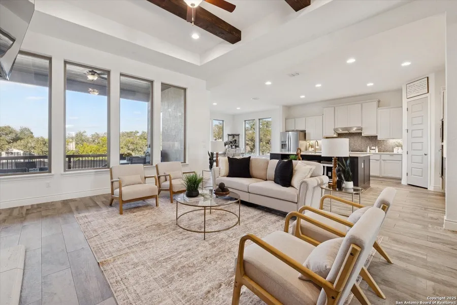 Welcome to the kind of home that just feels good from the moment you pull up. Sitting quietly at the end of a cul-de-sac on nearly a third of an acre, this single-story beauty offers over 3,300 square feet of space to spread out, unwind, and truly enjoy Hill Country living. Inside, you'll find tall ceilings, tinted windows, and a thoughtful open layout that fills the home with natural light. The kitchen was made for gathering - with an extended island, stainless appliances, and plenty of cabinet space for the family chef. The primary suite feels like its own little getaway, featuring a spa-inspired bath with a soaking tub, walk-in shower, and an oversized closet that could easily double as a dressing room. A private flex room with sliding barn doors makes the perfect home office, playroom, or media space depending on your needs. Step outside to a covered patio made for quiet mornings or ...