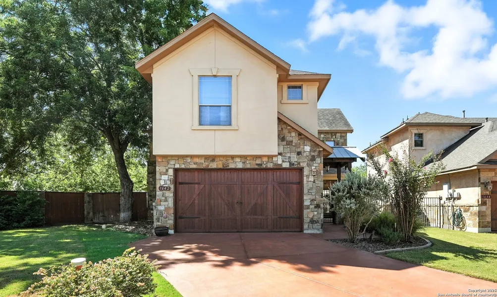 Unbeatable location in the heart of Gruene! Nestled in a quiet cul-de-sac within a gated community, this one-owner home combines Hill Country charm with thoughtful design and modern comfort. Step inside to an open floor plan centered around a soaring two-story stone fireplace-perfect for entertaining. The kitchen offers granite countertops, gas cooking, and a functional layout ideal for gatherings. Enjoy peaceful outdoor living with no rear neighbors, a spacious back patio, and a gated front entry. Take your golf cart just minutes to the historic charm of Gruene-restaurants, shops, live music, and river fun await. This home is a rare opportunity to enjoy a lifestyle like no other.