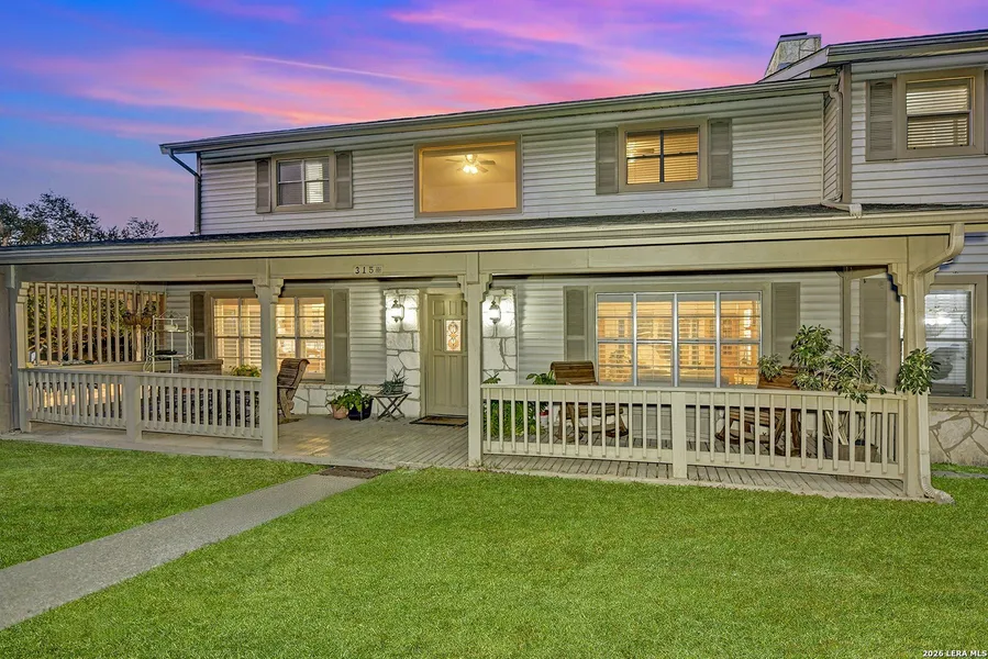 Fantastic views of Canyon Lake from the upstairs porch, downstairs porch and also from side oversized deck! Multi-level deck includes a gazebo, television, lighting and large metal cattle trough pool, complete with trough-pool equipment. Sit inside, enjoy the woodburning fireplace as you look out the wooded back yard and overlooking lake. Plantation shutters add a country feel to the home. At second floor back porch, you have the same views of trees and the lake. Property is fully fenced (8 foot game fence at back and cedar at front) and gated with double doors that open to back yard with a second circle driveway which then leads into the two story, 40 ft by 40 ft detached garage which has own electric meter. Even better, the upstairs of garage is ready for water and new septic system to then convert into another living quarters of 40 ft by 30 ft. One garage bay door is opened manually, ...