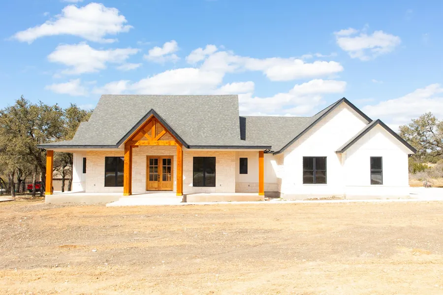 BRAND NEW CUSTOM BUILT HOME - Imagine yourself in this custom crafted home that offers Texas hill country style, unparalleled functionality, and luxurious amenities, all with country surroundings. Nestled within towering mature oaks, this 1.30 acre property offers a 3-bedroom, 2 full bath, 1 half-bath homestead that is tastefully built. With a flexible open plan, the kitchen creates warmth and practicality at the heart of the home. Custom cabinetry, a farmhouse sink, LG/Whirlpool appliances, a large island, beverage cooler, oven microwave combination, and bountiful natural light complete this spacious, entertainer's kitchen. The master suite features a sizable bedroom with an elegant bathroom suite, equipped with dual sinks, custom cabinetry, and a meticulously-designed walk-in shower and separate tub suitable for a daily spa experience. Designed for entertainment, the home's open floor...