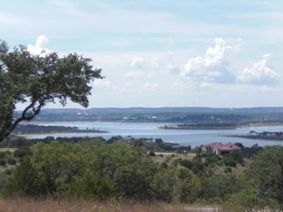 This is one of the best backyard, unobstructed lake views in Mystic Shores! This view is amazing, hard to beat. Level building sites, huge panoramic lake AND hill country views, and a good price. 360 degrees of views...this is one of the best of the best.