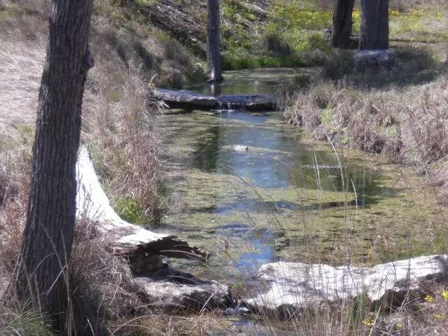 Almost 3 acres with a SPRING FED CREEK WITH 3 WATERFALLS in a park-like setting. Landscape well on property. Can run at 40 gal./min. if used in dry season. Based drive way in place with rock bridge over creek. 3 flat building sites. Could build on either side of creek.