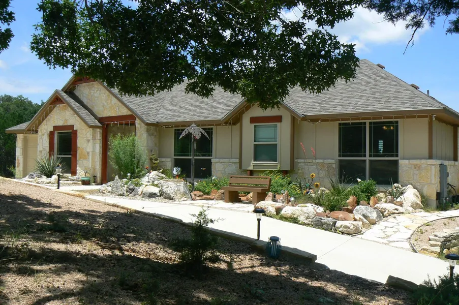 Wonderful, serene, secluded paradise on 1.68 gated acres with great lake and hill country views, winding creek with koi pond, private, peaceful settings, wildlife. Owner built as personal home, being used as vacation/B&B nightly and weekly rental. Selling furnished except entertainment center. Outdoor multi-level party areas, custom log cabin style playhouse. Home is 3/2 with formal dining and study could be 4th bedroom, with lake views from all rear rooms and decks. Granite in kitchen and baths. Long, narrow drive from Colleen to gate, then opens up to acreage. Minutes to Canyon Lake, 15 minutes to Gruene.