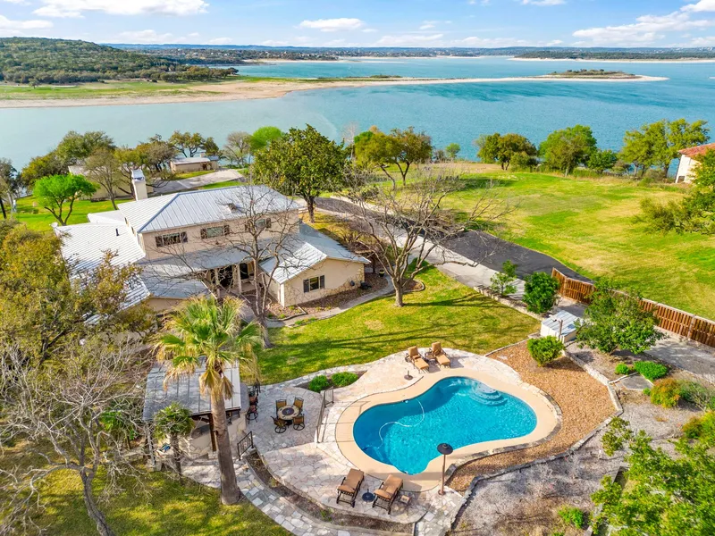 "OWNER FINANCING available so please ask!" Welcome to your own private oasis nestled on the stunning shores of Canyon Lake! This exquisite property boasts a rare and expansive 4.54 acres of land, with a breathtaking 385+/- feet of waterfront, offering unparalleled serenity and seclusion. Step into luxury as you enter the 5,766 SqFt Main Home, where every detail has been meticulously crafted for both comfort and elegance. There is 5 bedrooms & 5.5 bathrooms affording each bedroom to having its on en-suite bath. With spacious living areas, soaring ceilings, and panoramic views of the lake, this home is an entertainer's dream. The gourmet kitchen is a chef's delight, featuring top-of-the-line appliances and custom cabinetry. Relax and unwind in the opulent master suite, which is the entire second story, complete with a spa-like ensuite bathroom, his & hers closets and it's own flex space & private balcony overlooking the water. A kitchen a chef would be envious of, smart home lighting, Sonos throughout, gorgeous wood floors, billiard room and so much more to truly make your Canyon lake living the best it can possibly be. For extra guests or extended family, the charming 660 SqFt guest house provides a cozy retreat with one bedroom and one bathroom, complete with glass shower and claw foot tub overlooking the lake, while also ensuring privacy and comfort for all. Outdoor living takes center stage with a luxurious pool with lake views, perfect for enjoying sunny days and warm evenings with loved ones and positioned next to the oversized outdoor kitchen which is ideal for al fresco dining, while the expansive patio offers plenty of space for lounging and entertaining all year long. But the amenities don't end there!! - PREPARE TO BE AMAZED by the 2,000 square foot barn, thoughtfully converted into a FULL DANCEHALL & BAR to be the coolest property owner on the lake. Equipped with a stage, sound equipment, and dazzling lighting, this unique space is perfect for hosting unforgettable events and celebrations. It also has a living space and bedroom upstairs. With so much to offer, this property truly stands out as a one-of-a-kind opportunity. Rarely do properties of this caliber come on the market, making it a truly exceptional find. Sold turn-key, with only a few exclusions from the sellers, this is your chance to own a piece of paradise on Canyon Lake. Don't miss out on the opportunity to make this extraordinary property your own and dont forget, **OWNER FINANCING** is available!!