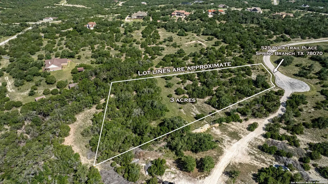 Nestled at the end of a quiet cul-de-sac in the sought-after community of Mystic Shores, Lot 2009 offers 3 acres of elevated Texas Hill Country beauty. Positioned at 1,330 feet, this homesite boasts panoramic sunrise views and peaceful surroundings, with gentle tiers that provide a level build site for your dream custom home. Scattered mature trees add character and privacy, while the backdrop of nearby ranchland brings a serene, country-living feel-complete with roaming livestock in the distance. Whether you're sipping coffee on the porch or stargazing under the wide Texas sky, you'll love the tranquil setting this property provides. Mystic Shores at Canyon Lake is a premier custom home community offering an impressive range of amenities, including lake and riverfront parks, nature trails, resort-style pool complexes, pickleball and tennis courts, RV and boat storage, a private nature preserve, and a scenic clubhouse. Don't miss the opportunity to own a piece of the Hill Country in one of Canyon Lake's most desirable communities!