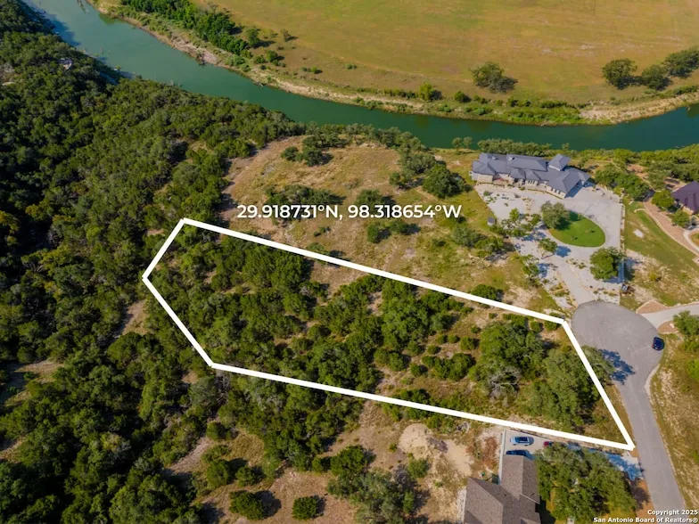 Imagine your dream home perched on this breathtaking 2.17-acre estate. Panoramic views unfold before you,showcasing the majestic Texas Hill Country and the winding Guadalupe River. Nestled in a quiet cul-de-sac, mature oak and cedar trees provide a timeless ambiance. The property is partially cleared, with a gentle slope towards the back offering diverse elevation options for your custom build. Enviable amenities also include pickleball courts for you and your friends. Beyond Your Doorstep: Aquatic Adventur