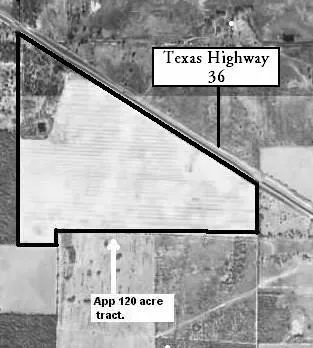 120 acres more or less, divided off of a larger ranch by Texas highway 36. Seller will survey property to determine final acreage. Located in the western part of the county, approx 100 acres good deep sandy tillable soil, paved frontage, small stock pond, coop/city water meter available. $675 acre