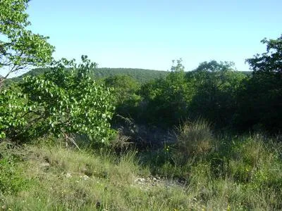 The ranch has 5 mountain tops and a large creek running through the property, with several smaller creeks and canyons. Elevation change of more than 300 feet, mostly covered with hardwood trees and underbrush. Mountain tops are flat with Shin Oak and Buck Brush, large bolders and some obvious indian mounds.