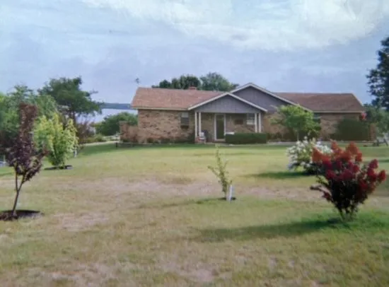 Beautiful Lake Home on 5 acres.Updated brick home with vaulted ceilings,panoramic windows,hardwood floors and an amazing brick woodburning fireplace. Open concept living at its best. Two master suites one bathroom has a walk in shower and the second one has a beautiful custom tiled tub shower with custom vanity and built in cabinets. Vaulted screened porch.2 car garage a room above w bath. 1 br 1.5 b cabin, pipe fencing. Metal Workshop.RV 50 amp hook up. There is a fountain in 20ft deep pond. Great playhouse. Beautiful views! Total sg ft includes house,cabin and above garage room.call Sheila 325-356-6331