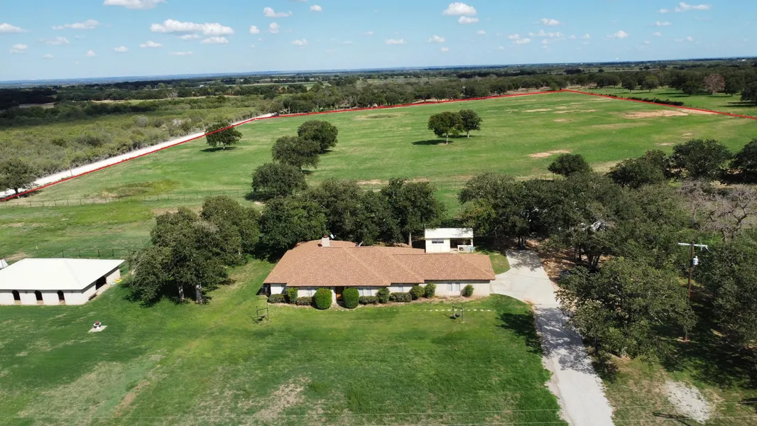 22 acre Horse facilities with 4 Bd, 3 Bth, estimated 3,400 sq ft under roof. Large split bedrooms, game room, upgrades in this custom build from the quality construction period of late 1970's. New roof, new carpet in 2 bedrooms, and new appliances, double oven, central AC & Heat. All Electric. Oversized garage with fridge and freezer connections along with a kitchen sink and counter top. 2 hot water heaters. 2 septic systems. Hot Tub building with its own patio. 5-bay rollup door 1000 sq ft shop, storage or parking. Brick horse barn with runs, pipe and cable fencing for 3 large separate paddocks. Custom made hydraulic breaking system horse walker for easy pull on horses. Hay shed and water well. Well shaded with scattered red and live oaks. Excellent ground for any discipline. Stock tank in a 16 acre costal field with average production of 4 round bales to the acre per cutting. FM Highwa...