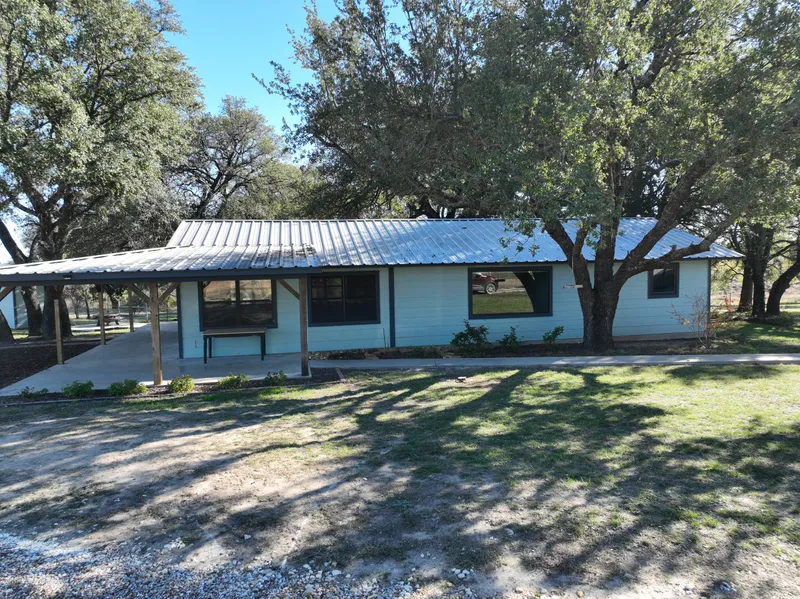 Silence!! Sounds good, doesn't it? Quiet and so peaceful is what you will find here on this 25 acre ranch. Sit on the porch and watch the wildlife stroll by as you take in the beautiful views. This charming home is surrounded by large, majestic Oak trees, boasting a wraparound porch making it perfect for those wanting to get out of the city and enjoy what country living is all about. There are a total of four bedrooms and two bathrooms, 2 bedrooms and 1 bath in the home and 2 bedrooms and 1 bath in the barndominium, giving you approximately 1672 sq ft of living space. There is a large shop with three roll up doors, two walk in doors and an implement shed. Make your way to the top of the hill to see the awesome hill country views. The property is currently wildlife exempt with great perimeter fences, so bring your livestock. Call us today for an appointment to view this great property.