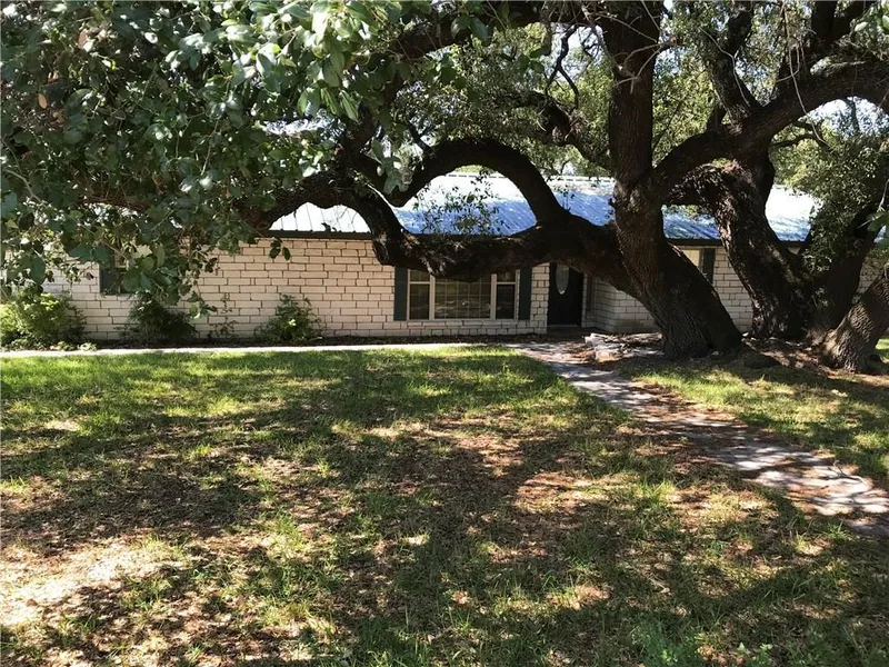 Beautifully renovated home on almost 6 acres in the highly desired neighborhood of Indian Creek. This home sits nestled in five or six huge mature Live Oaks. The home is almost entirely new on the inside and the Austin Stone with the green metal roof is the classic TX ranch style look. It features 3 full bedrooms with a master suite and guest bath as well as a second sitting room or game room off the kitchen. There's a nice large covered back porch and fenced in back yard. A small storage shed is in the back yard as well as a 40X60 insulated metal shop with 2 12 ft. roll up doors, on slab with electric and plumbed for a bathroom. This is move in ready!! Country living on the outskirts of town